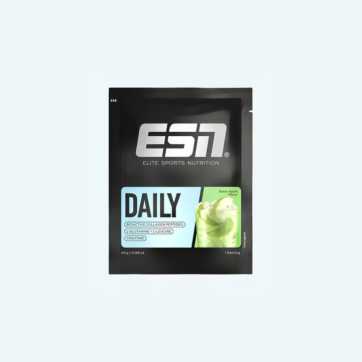 Everyday for the win – mit unserem Daily. Mit der Kombi aus Kollagenpeptiden, L-Glutamin, Creatin¹ und L-Leucin unterstützt dich unser Daily Drink jeden Tag bei der Versorgung deiner Gelenke, Sehnen, Bänder und Knorpel - also deine Basis für maximale Performance.